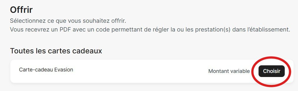 Pour acheter un bon cadeau, voici les étapes à suivre :